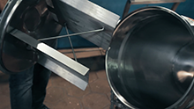| Фиксация бочки: Ваша бочка с продуктом надежно закрепляется внутри нержавеющей рамы-кожуха с помощью системы прижимов. Запуск: Оператор задает время смешивания и скорость вращения на пульте управления. Нажатие кнопки запускает плавный разгон. Смешивание: Бочка вращается вокруг своей горизонтальной оси (или оси, близкой к горизонтальной). Содержимое интенсивно перемешивается под действием гравитации и центробежных сил. Возможно вращение в реверсе. Контроль и Остановка: Оператор может визуально контролировать процесс. По истечении заданного времени таймера смеситель автоматически плавно останавливается. При необходимости срабатывает аварийная остановка SAFE-STOP. Доводка и Выгрузка: С помощью кнопок доводки бочка плавно приводится в удобное для выгрузки положение (обычно люком вверх или в сторону). Бочка освобождается от прижимов и снимается с рамы (например, штабелером или тельфером). |